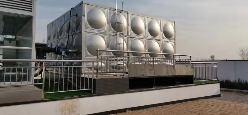 河北省滄州市東光縣河畔新城裝配式不銹鋼保溫水箱安裝完成,保溫材料為聚氨酯保溫,外殼材料為304不銹鋼。