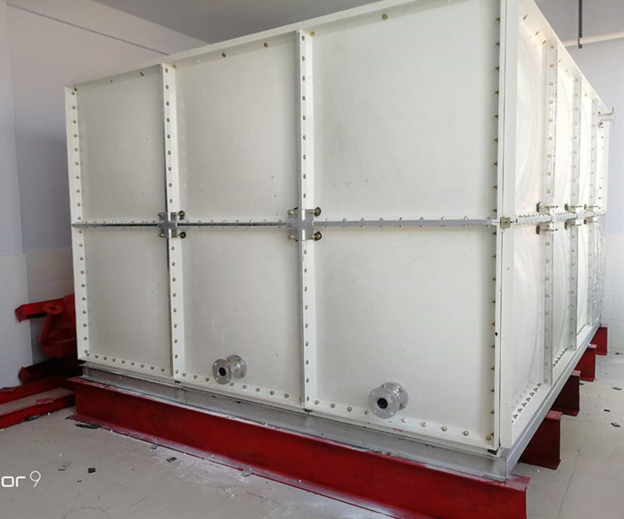 玻璃鋼水箱的槽鋼,都是采用了槽鋼焊接成網狀,除去銹后用環氧樹脂油漆進行刷過,做好了防腐的處理。玻璃鋼水箱下面的底板也是受壓平均. 板塊尺寸分別為1000×1000、1000×500和500×500三種尺度板塊,然后接上管就能使用,也在各個領域里面使用。
