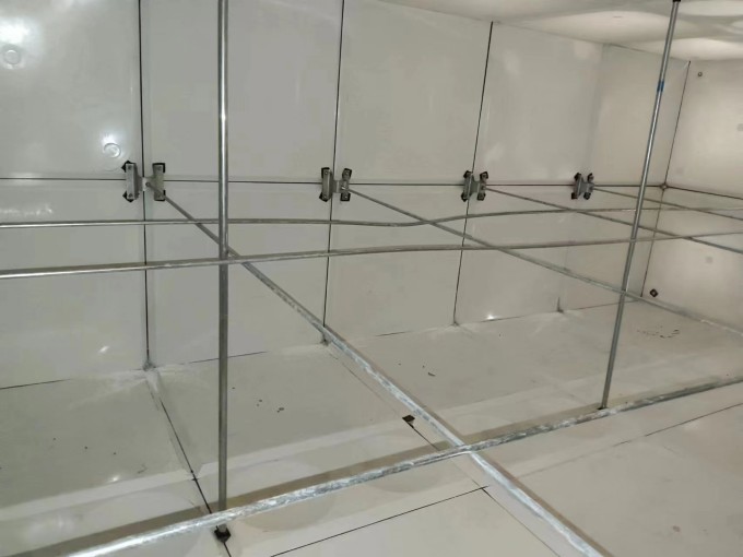 玻璃鋼水箱內部由支撐和拉筋組成,主要作用就是防止水箱變形。拉筋簡單來說就是拉兩邊的水箱板的,為了固定水箱,水箱里的水灌滿了水箱不會漲破,對水箱起著重要作用。如果只用水箱板和膠條組成我們需要的水箱,雖然不滲水了,但是還不能盛水。因為盛水之后水箱會承受一個向外的張力,要加上拉筋系統受力,否則玻璃鋼水箱很容易撐壞。拉筋系統有圓鋼,內外拉筋板,對拉螺栓緊固。這樣玻璃鋼水箱就可以裝水了。