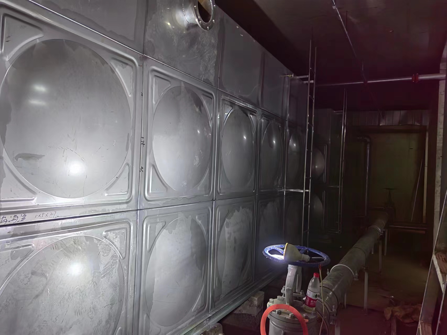 我廠承接的河北省廊坊市三河市大洋城南區兩臺67.5立方304不銹鋼給水水箱已經安裝試水完成。現場實拍照片如下: