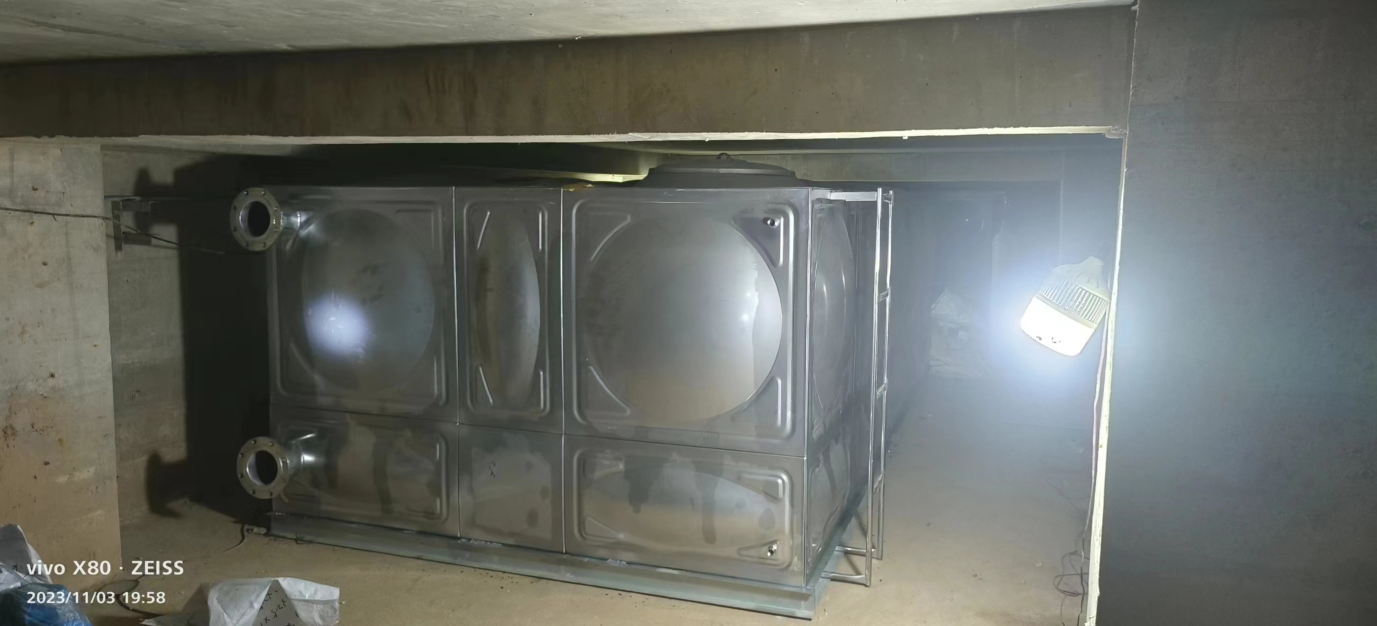 我公司承接的一臺15立方304不銹鋼保溫水箱已經安裝試水完成,此項目為山東省聊城市民生東昌壹號院。實拍照片如下:
