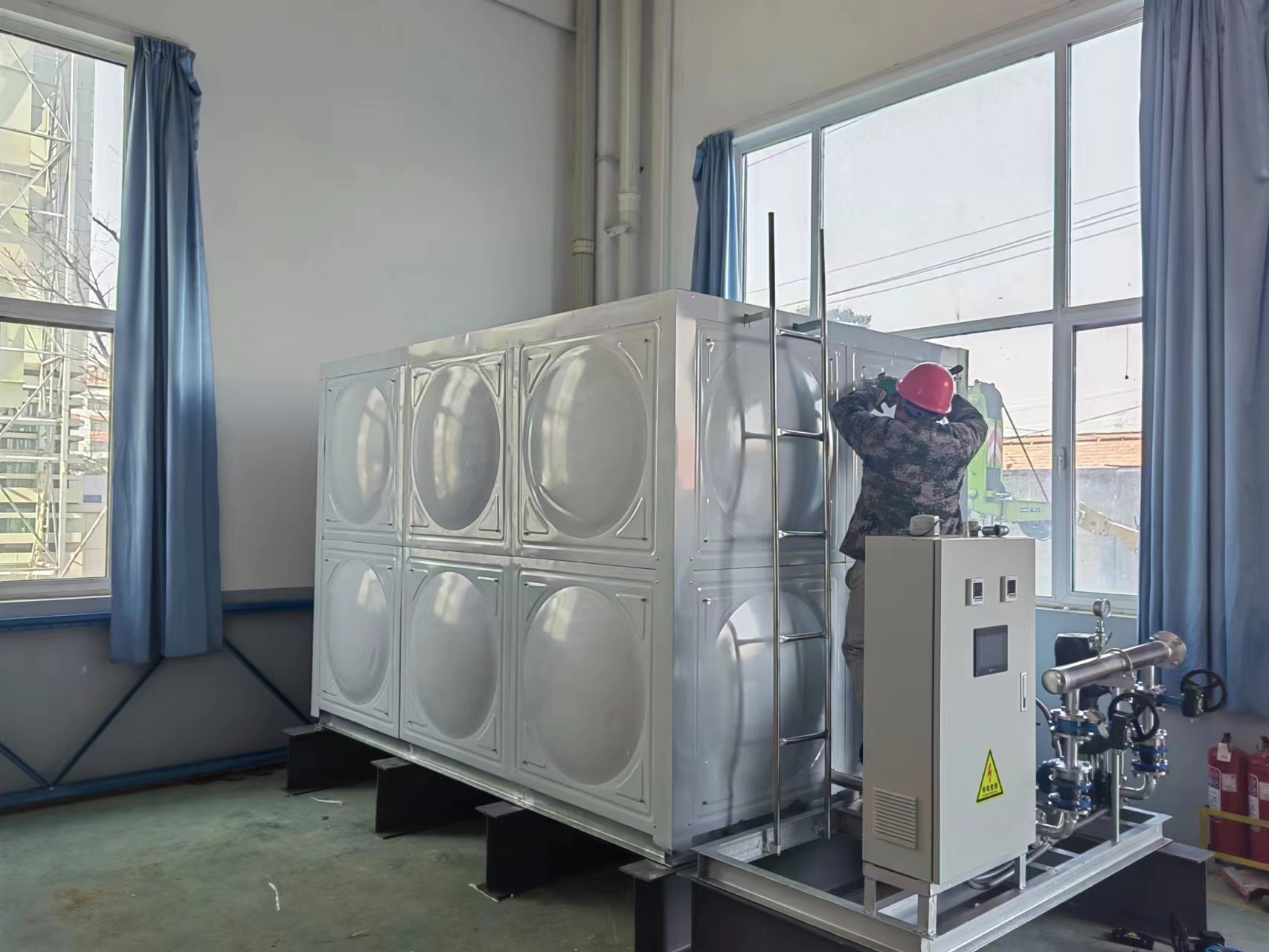 我公司承接的山東省濰坊星宇集團一臺聚氨酯304不銹鋼保溫水箱已經安裝完成,水箱用做生活水箱,客戶對我公司產品質量和安裝師傅的手藝表示滿意和認可。現場實拍照片如下:
