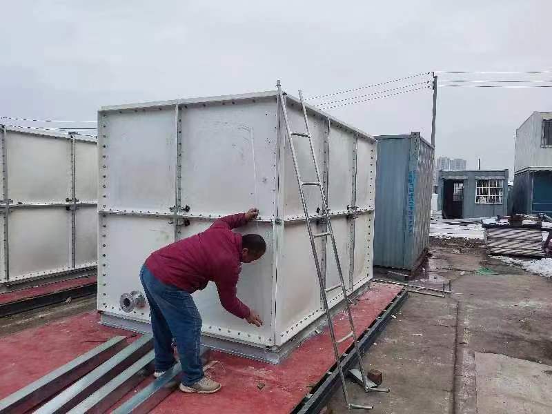 我廠承接的山東省濟南中建二局箱泵一體化消防項目一臺12立方、一臺20立方的玻璃鋼水箱已經安裝完成,客戶對公司的產品質量和安裝服務表示滿意。現場圖如下: