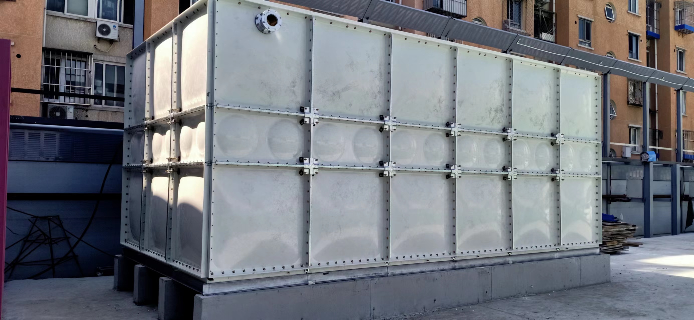 1、玻璃鋼水箱在安裝前 首先要檢查水箱混凝土基礎(chǔ)表面是否平整,然后按照水箱底板尺寸,將已經(jīng)截好的槽鋼進行焊接組合,然后開始組裝水箱板,水箱板與水箱板之間中間夾密封條,以螺栓連接。先將底板組裝完畢平鋪到槽鋼底座上,然后將側(cè)面組合與底部連接。